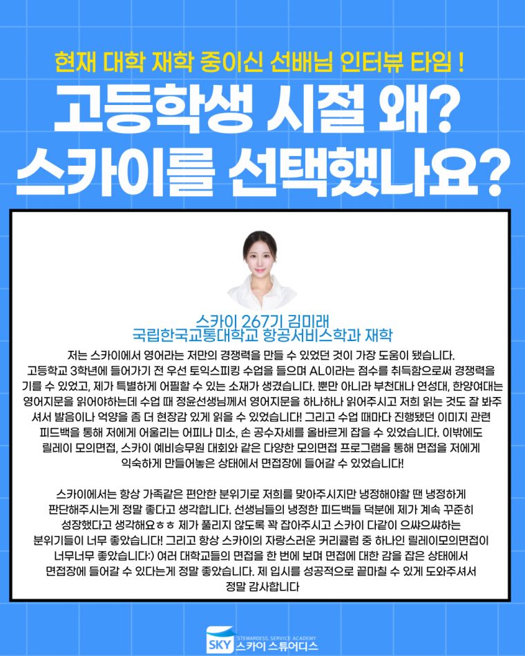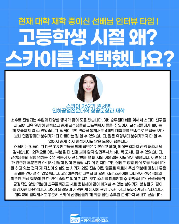 ½ºÄ«ÀÌÀÇ ±³À° ¸ñÇ¥´Â Ç×°ø°ú ÀԽô ¹°·ÐÀ̰í