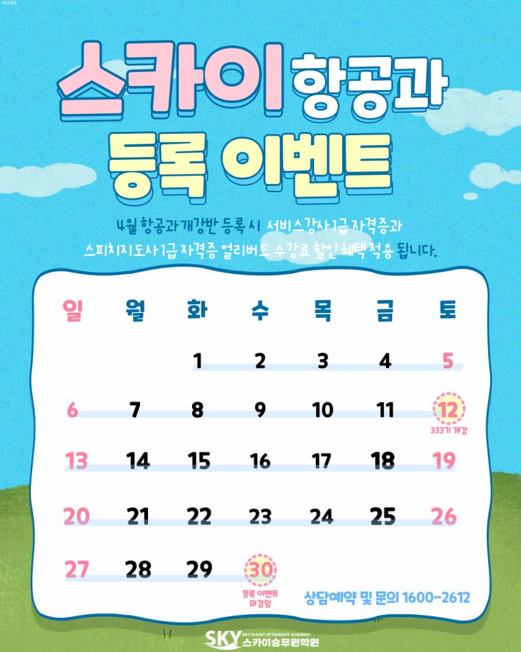 | Á¦¸ñ [Ç×°ø°ú °³°] ½ºÄ«ÀÌ Ç×°ø°ú 4¿ù µî·Ï À̺¥Æ® (~04/30 ¼ö±îÁö) |