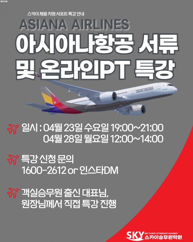 ¾Æ½Ã¾Æ³ªÇ×°ø ¼­·ù Ư°­°ú ¿Â¶óÀÎPT¸éÁ¢ Ư°­À» ÁøÇàÇÕ´Ï´Ù🙏🏻