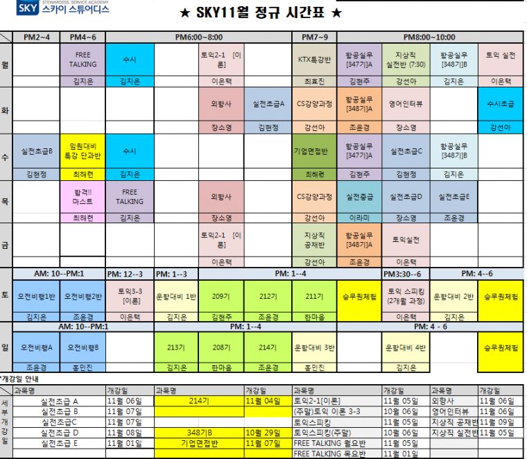 Á¦¸ñ [´ë±¸ ½Â¹«¿øÇпø] 11¿ù ¼ö°­½Ã°£Ç¥
