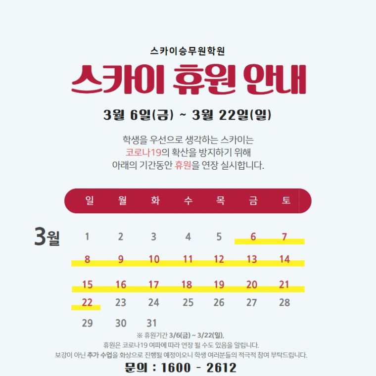 Á¦¸ñ Äڷγª 19 »çÅ¿¡ µû¸¥ ÈÞ¿ø ¿¬Àå°øÁö ÀÔ´Ï´Ù.(2)
