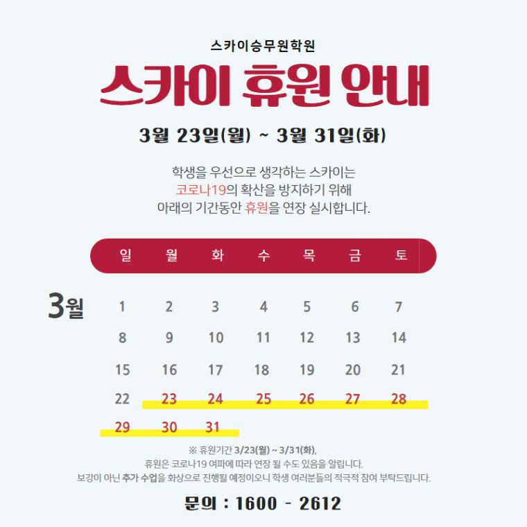 | Á¦¸ñ Äڷγª·Î ÀÎÇÑ ÈÞ¿ø ¿¬Àå ¾È³»(3) |