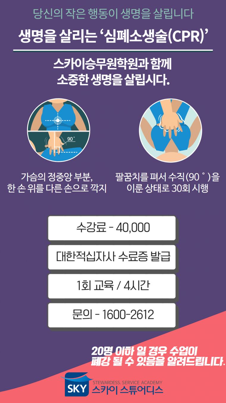 ´ëÇÑÀû½ÊÀÚ»ç ½ÉÆó¼Ò»ý¼ú(CPR)±³À° - ¸¸ 16¼¼ ÀÌ»ó - ±³À°³»¿ë - -> ÀÀ±ÞóġÀÇ Çʿ伺°ú ÀÀ±Þ»óȲ ½Ã Çൿ¿ä·É ½Àµæ -> ȯÀÚ ¹ÝÀÀ È®ÀÎ -> ½ÉÆó¼Ò»ý¼ú°ú ÀÚµ¿½ÉÀå Ãæ°Ý±â »ç¿ë¹ýÀÇ ÀÌÇØ -> À̹°Áú¿¡ ÀÇÇÑ ±âµµÆó¼â È®ÀÎ