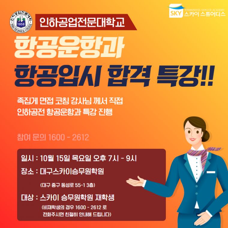 | Á¦¸ñ ÀÎÇϰø¾÷Àü¹®´ëÇб³ Ç×°ø¿îÇ×°ú Ư° ¾È³» |