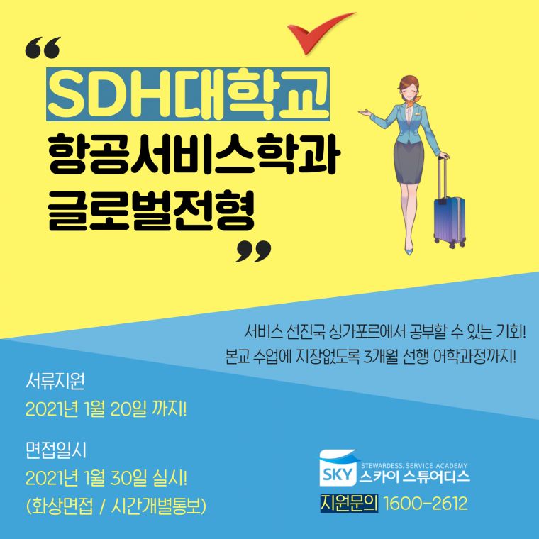 | Á¦¸ñ [ÇØ¿Ü´ëÇÐ]SDH´ëÇб³(½Ì°¡Æ÷¸£)Ç×°ø¼ºñ½ºÇаú ±Û·Î¹úÀüÇü ¸ðÁý! |