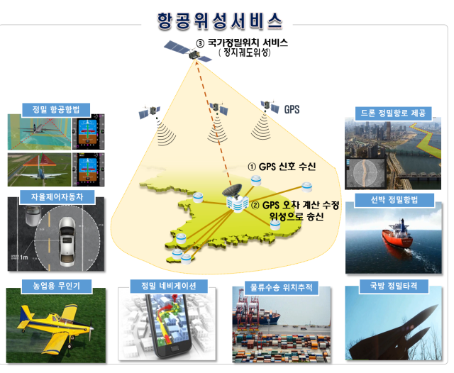 * Satellite Based Augmentation System : GPS ¿ÀÂ÷¸¦ Ãà¼ÒÇØ(17¢¦37m→1¢¦3m) À§¼ºÀ¸·Î Á¤È®ÇÑ À§Ä¡Á¤º¸¸¦ ½Ç½Ã°£ Á¦°øÇÏ´Â ±¹Á¦Ç¥ÁØ À§¼ºÇ×¹ýº¸Á¤½Ã½ºÅÛ