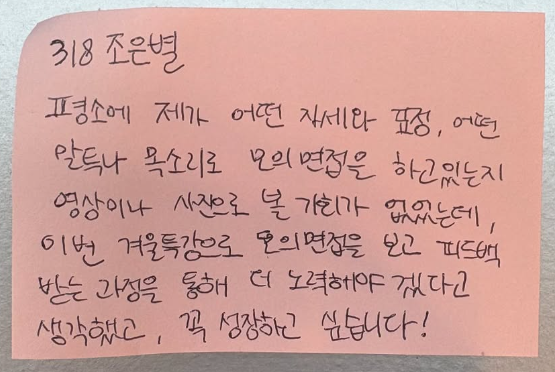| ÀÌÀü±Û | WINTER CLASS ¸ðÀǸéÁ¢ CLASS ¼ö¾÷ Èıâ (3) | 2025-01-25 |
