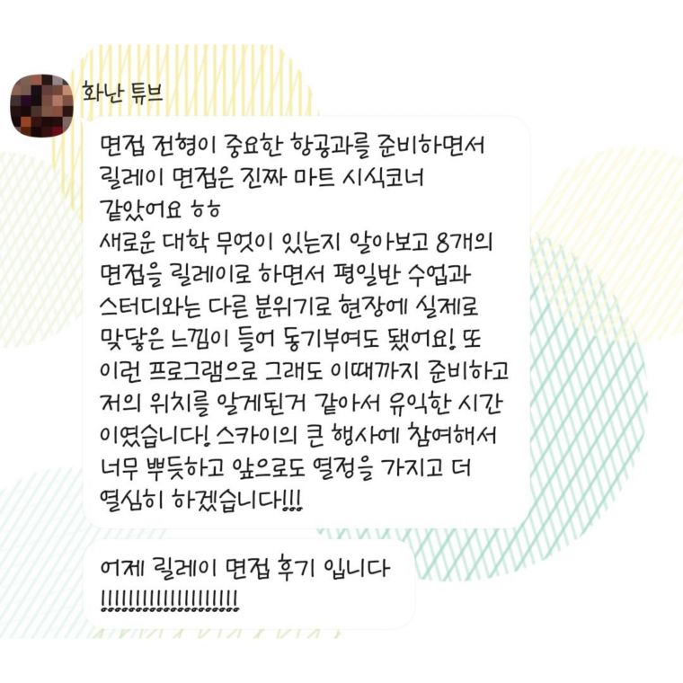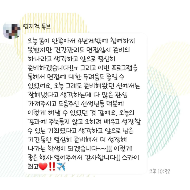 | ÀÌÀü±Û | 2022³â ½ºÄ«ÀÌ Æ¼¿þÀÌ ½Ç¹« ¸éÁ¢ ´ëºñ 2Â÷ tĪ Èıâ | 2022-08-22 |